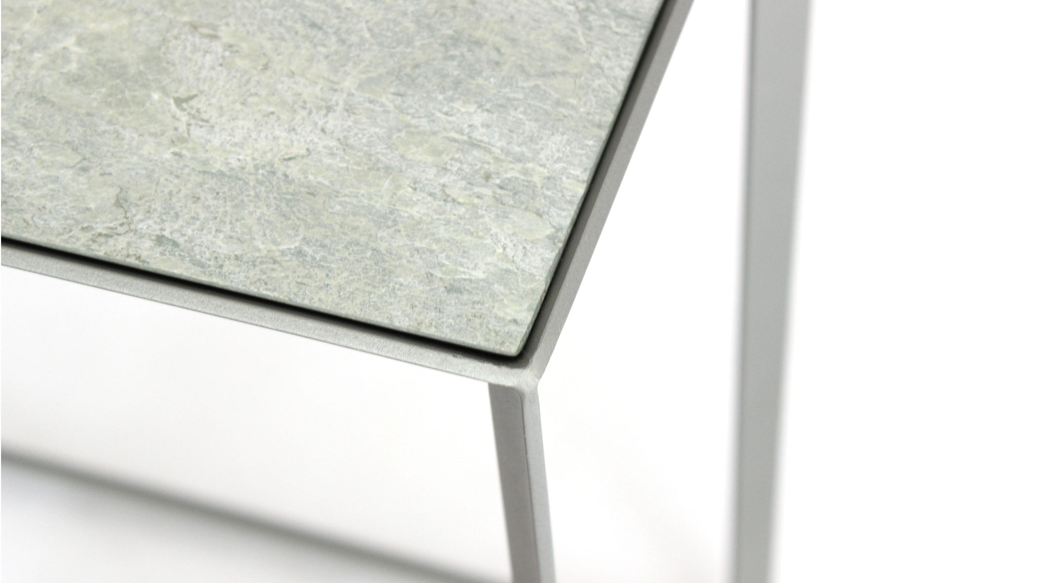 Because of its rectangular shape, it can be used in three different heights. The construction of the table frame is worked on mitre, so different cover plates can be placed easily on the top.