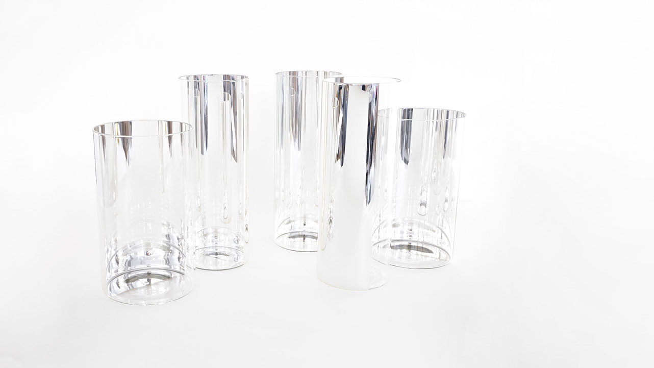 ILLUSION. The simple and straightforward design language of the elegant vase collection resembles an optical illusion. The mirrored surface of the vase plays with the reflections of the content and the space around it and conjures pleasant light reflections. Depending on the viewing angle, new dimensions always open up.