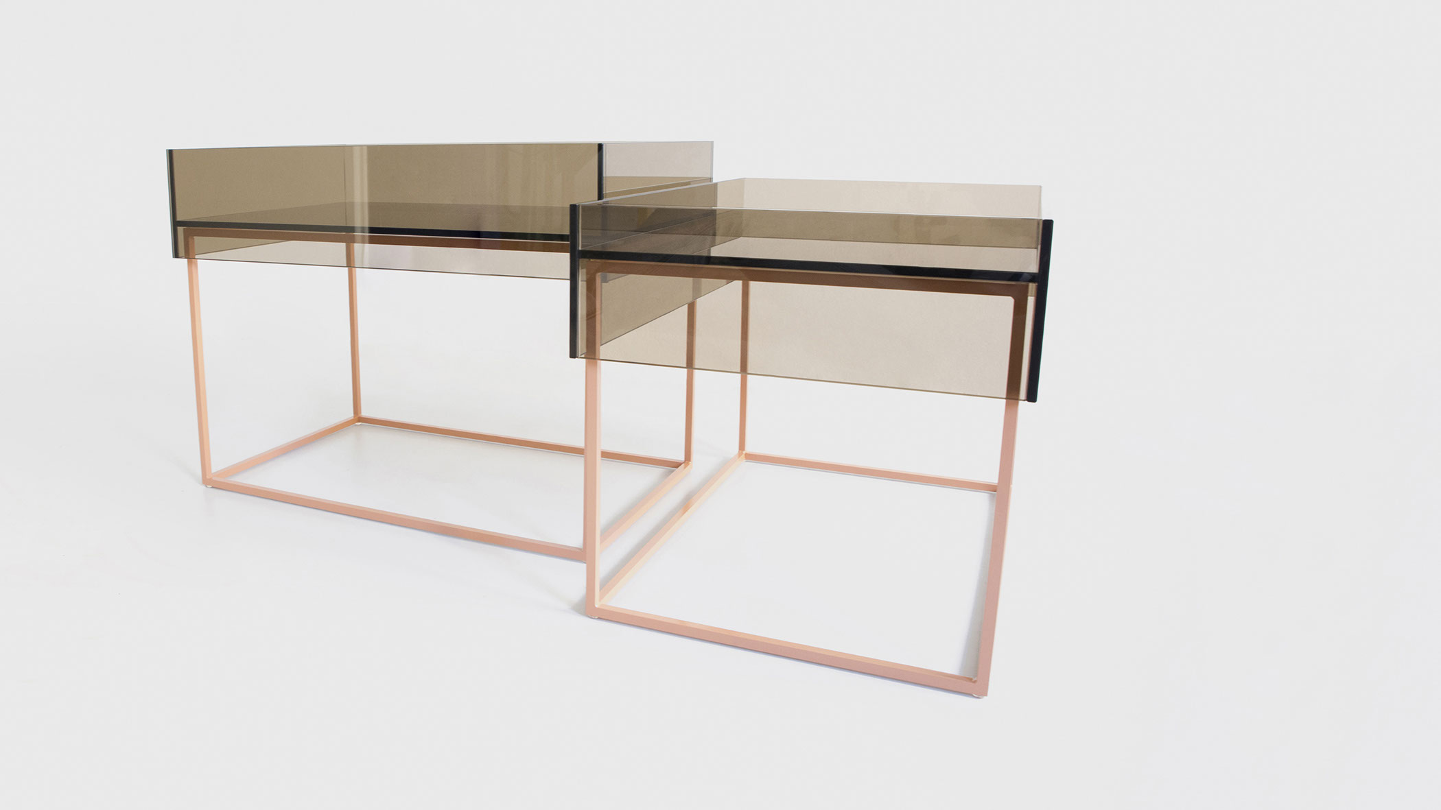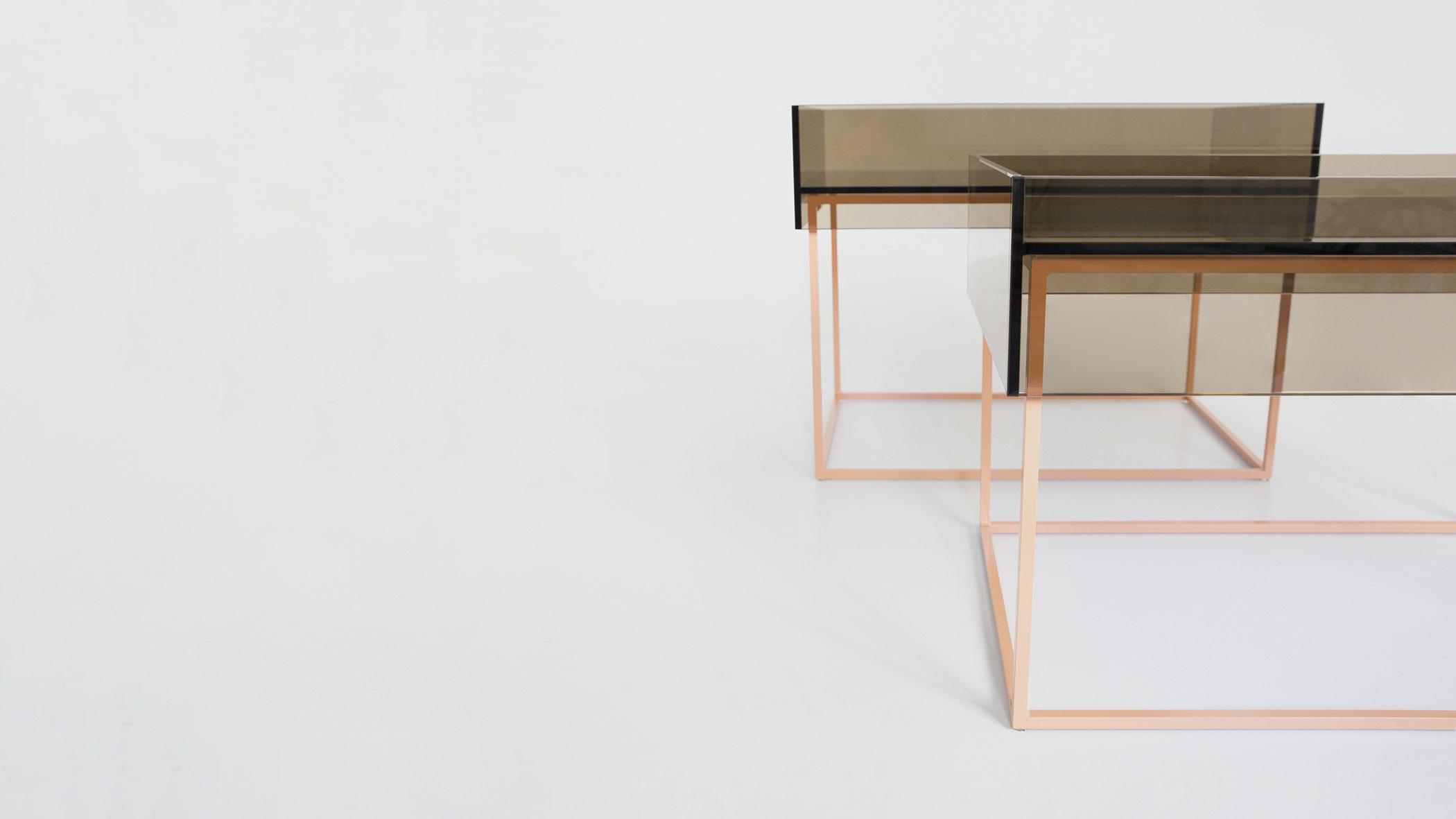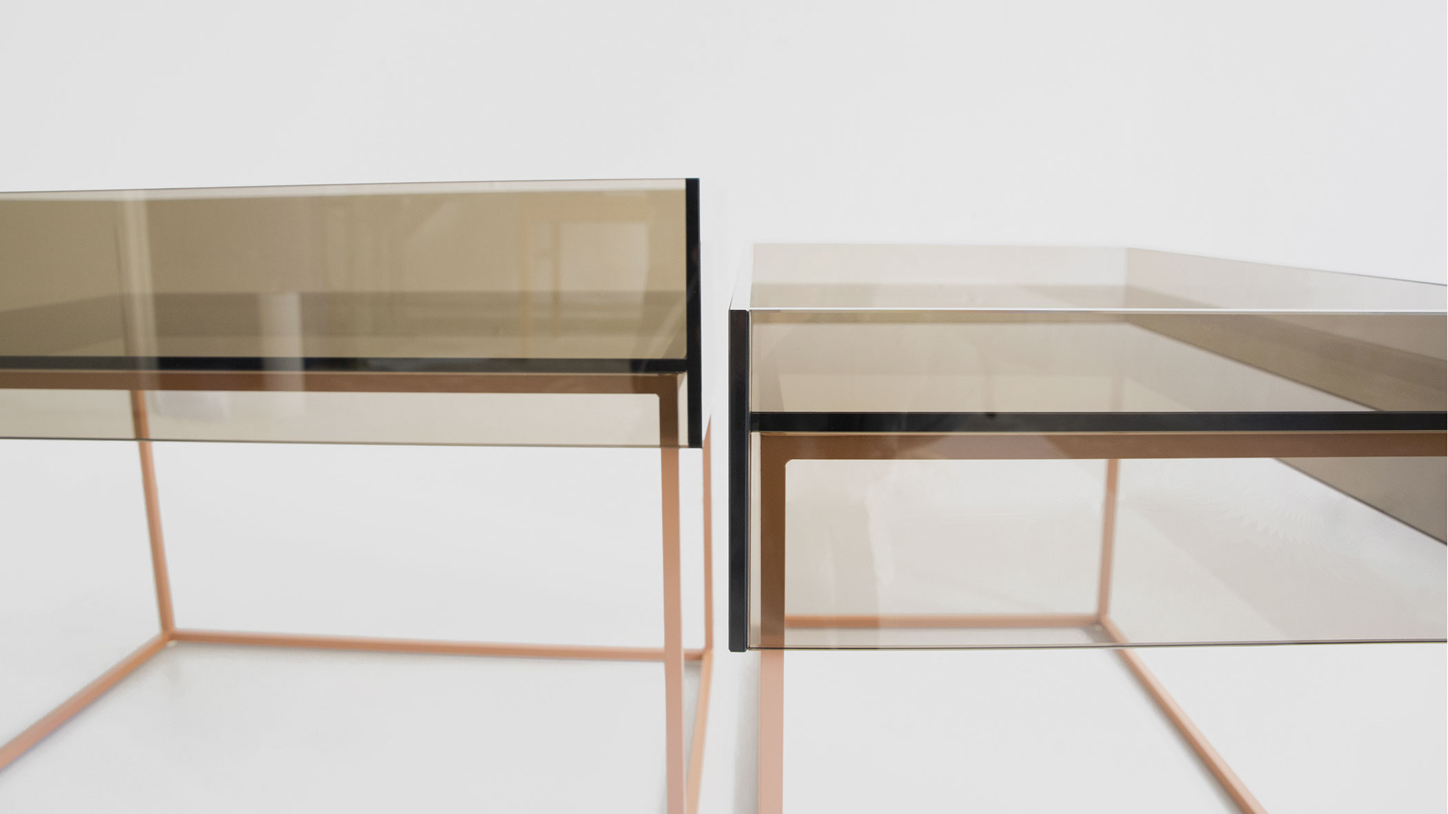 POOL is a base frame and a tabletop that can be used in two ways. Depending on one´s wishes, the different heights of the glass enclosure will either help to securely place items on top or immerse the content into the color mood of the glass table.